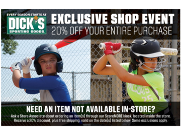 Save the date! Our partner, DICK’S Sporting Goods, is offering you a 20% off discount throughout the store to help you gear up for the season! Be sure to use the coupon linked below, as this is specific to our organization. The coupon is valid in-store on the dates above, and should be shown at the register during checkout.